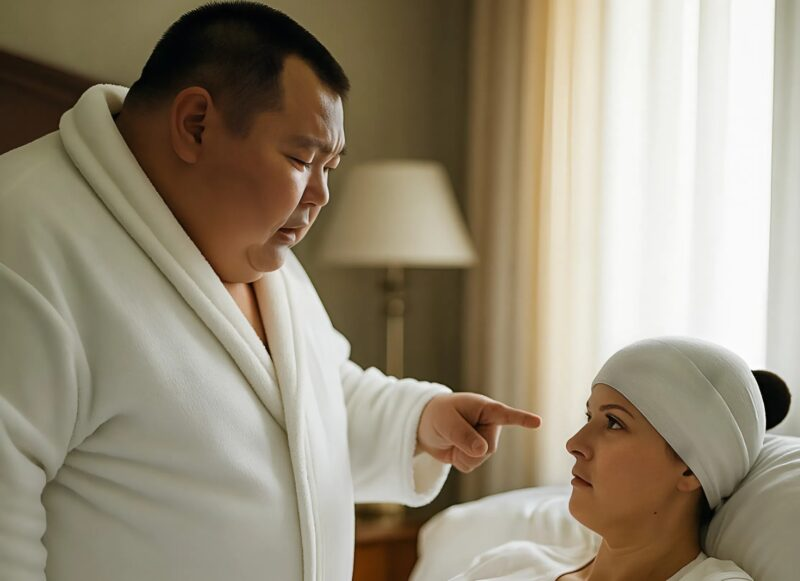 — “Isto é para você”, ela disse friamente, “por ousar exigir comida de uma mulher que mal se levantou depois da cirurgia.”