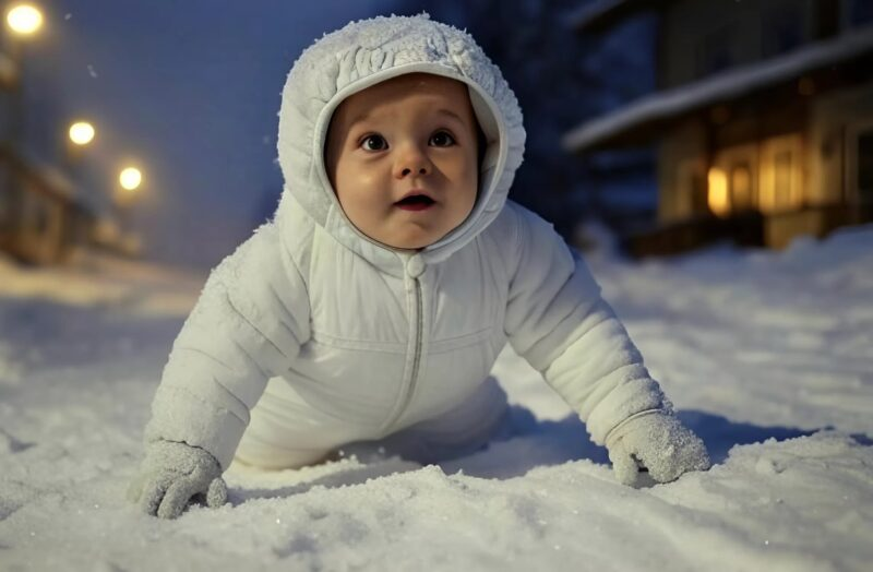 Ele saltou do táxi, incrédulo. Ali, na estrada nevada, naquela noite gélida, um bebê de um ano engatinhava vestindo um macacão branco. A criança usava sapatos finos, sem gorro, sem luvas. Suas bochechas estavam vermelhas de frio, seus lábios tremiam, sua respiração quase inaudível.