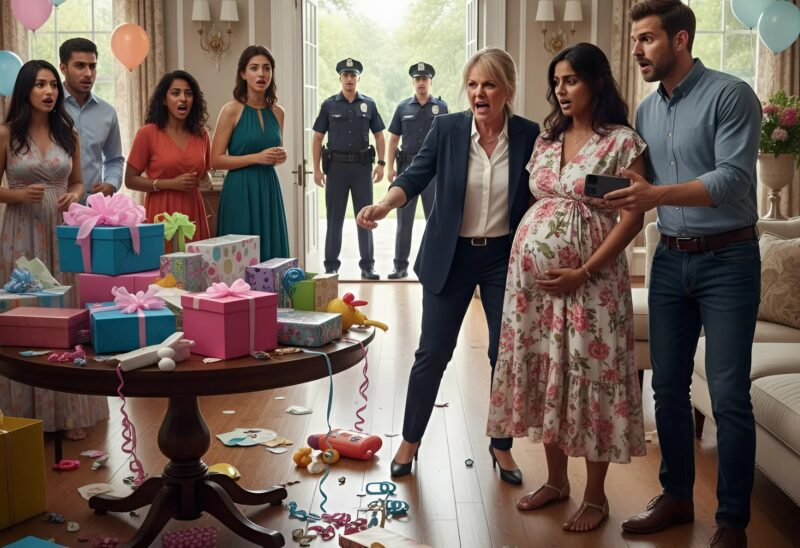No meu chá de bebê, minha sogra anunciou que escolheria ela mesma o nome do bebê. Quando recusei, ela destruiu todos os presentes — e, alguns minutos depois, algo aconteceu que terminou com a polícia levando minha sogra algemada.