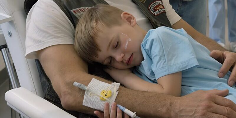 Um motociclista de 68 anos, hospitalizado, ouve o choro de um menino… e seu gesto transforma todo o quarto em uma cena inesperada.