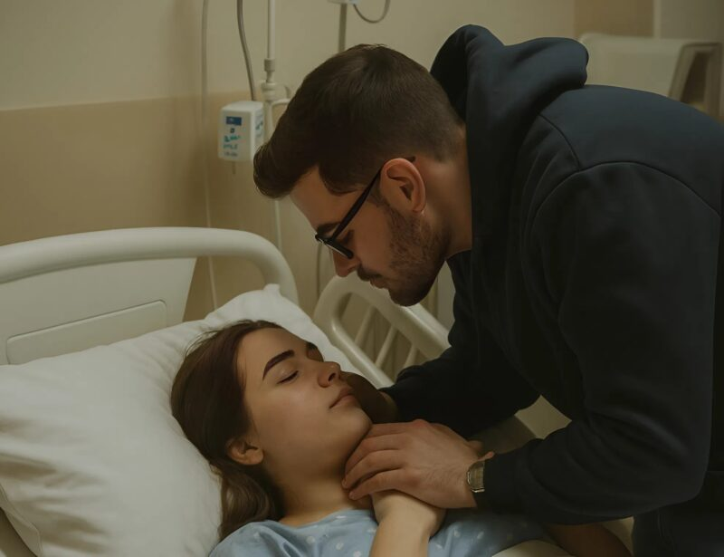 Ele se inclinou para beijar a testa dela… e de repente congelou. Seus olhos se arregalaram em horror. O homem havia percebido algo… 😲😲 Continua no primeiro comentário 👇👇