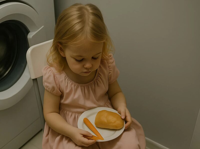 Toda vez que eu a chamava para almoçar, ela se recusava a sentar à mesa. Em vez disso, levava o prato para o banheiro, onde já havia colocado uma cadeirinha. Lá, trancava a porta e só então começava a comer. Quando terminava, saía com o prato vazio, como se nada de anormal tivesse acontecido.