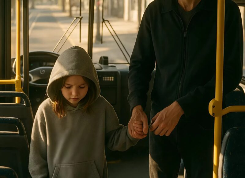 Um homem alto entrou no ônibus, seguido por uma menina de uns sete ou oito anos. Ele não a segurava pela mão, mas pelo pulso — com muita força, com muita firmeza. Observei-os pelo espelho, e tudo dentro de mim se apertou. Minha intuição gritou: algo está muito errado aqui.